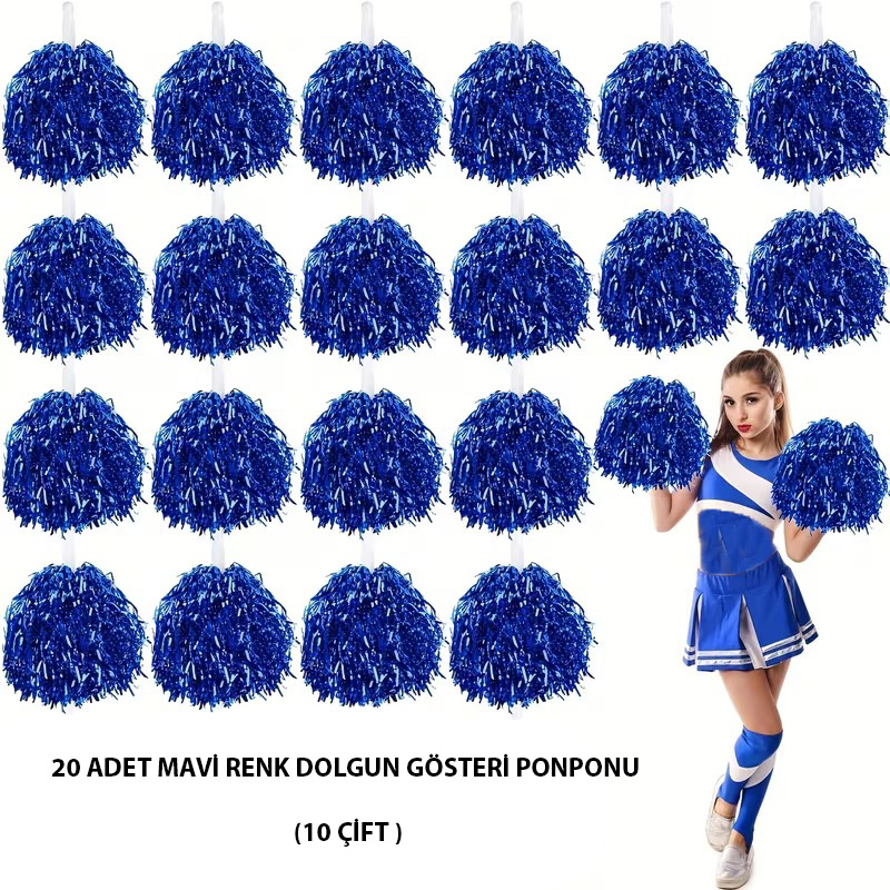 Okul gösterileriniz ve özel gün etkinlikleriniz için ışıltılı ve şık bir seçim! Bu 10 çift (20 adet) mavi renk ponponlar, 23 Nisan, 19 Mayıs ve 29 Ekim gibi milli bayramlar ile okul kutlamalarında mükemmel bir şekilde kullanılabilir.