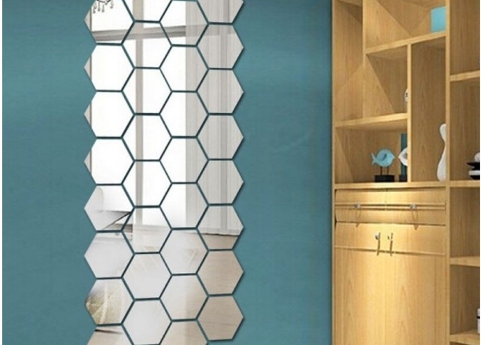 12 Adet Yapışkanlı Dekoratif Akrilik Ayna Altıgen