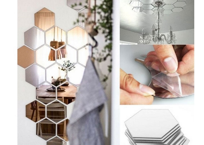12 Adet Yapışkanlı Dekoratif Akrilik Ayna Altıgen