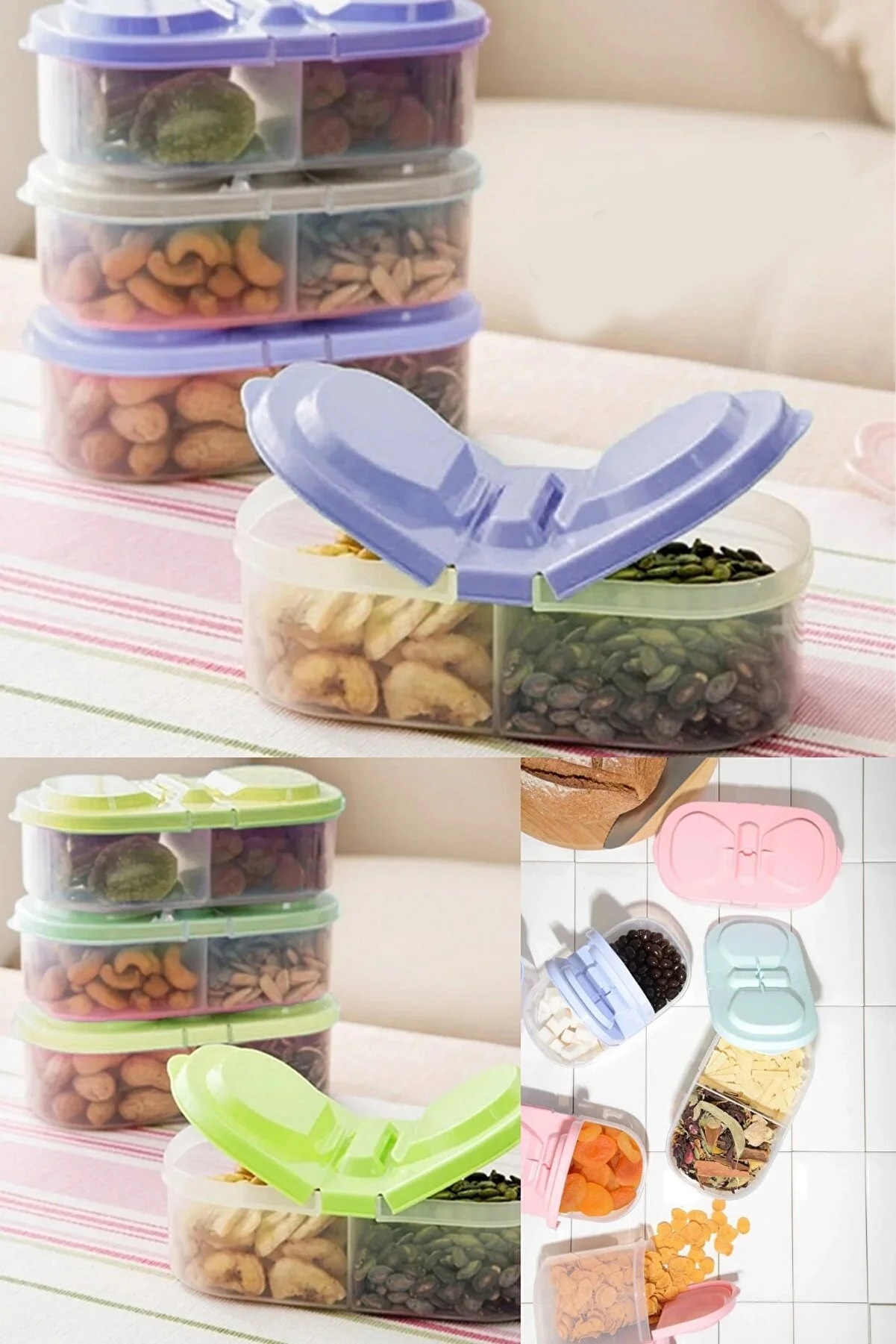 • 2 Adet 2 Bölmeli 600 ml Saklama Beslenme Erzak Kabı  Kahvaltılık Baharatlık Veya Çerezlik Kabı