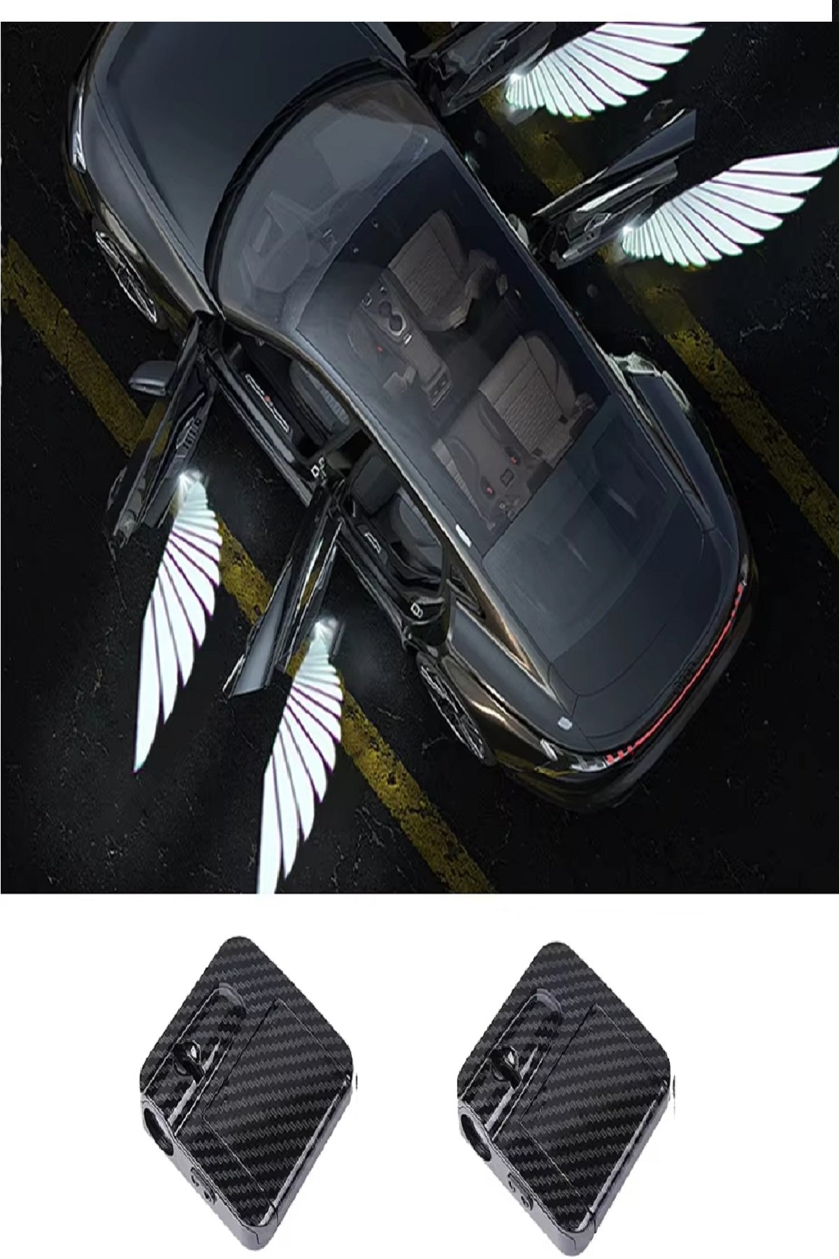 2 Adet Araba Melek Kanadı Kablosuz Kapı Projektör Pilli Led Gölge İşıkları Lamba Araba Aksesuarları