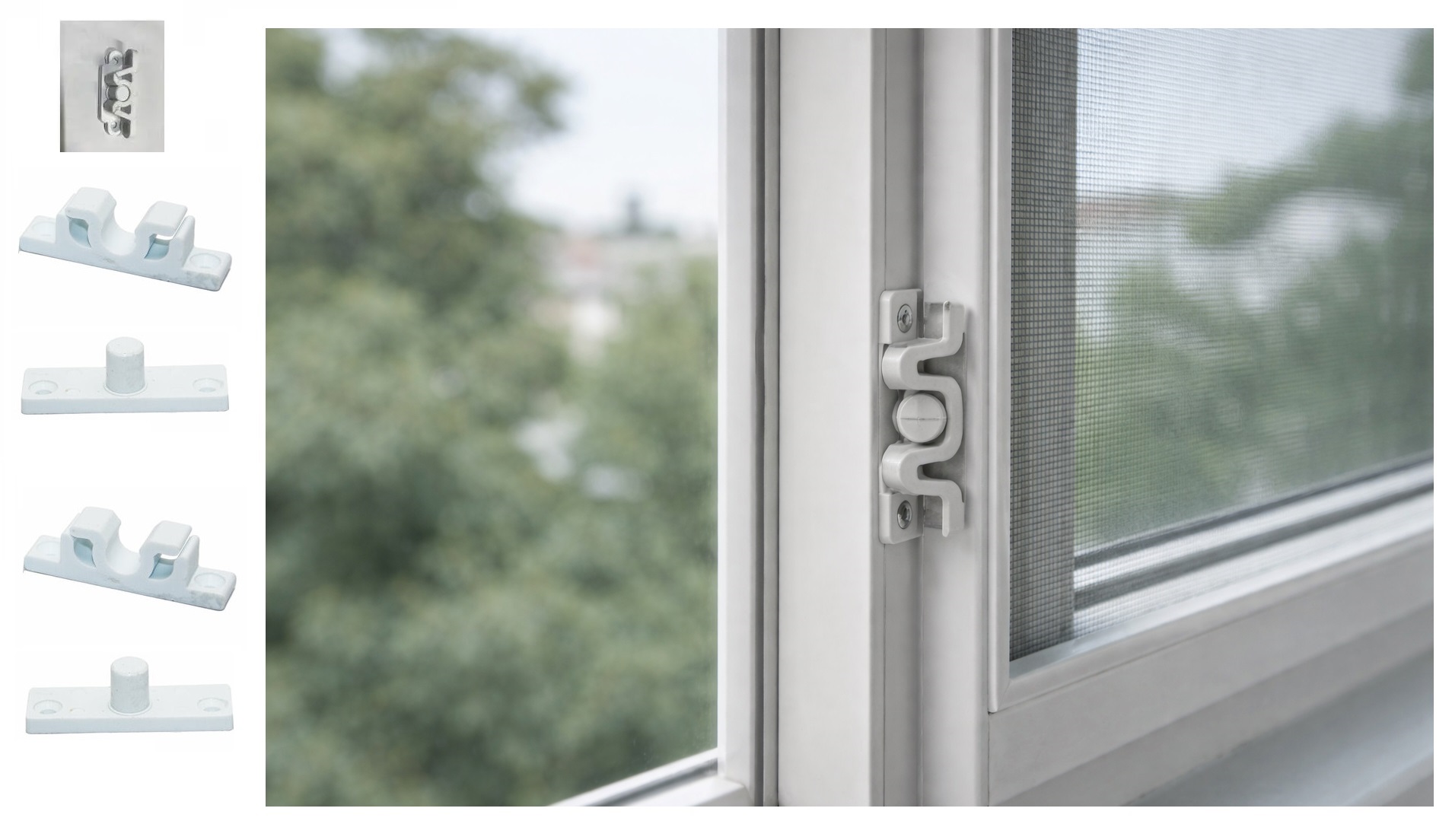 Minimal tasarımı sayesinde pencere estetiğini bozmaz. Beyaz rengi PVC pencere sistemleri ile uyum sağlar. Evlerde, balkon kapılarında ve ofislerde kullanılan sineklik sistemleri için ideal bir sabitleme çözümüdür.