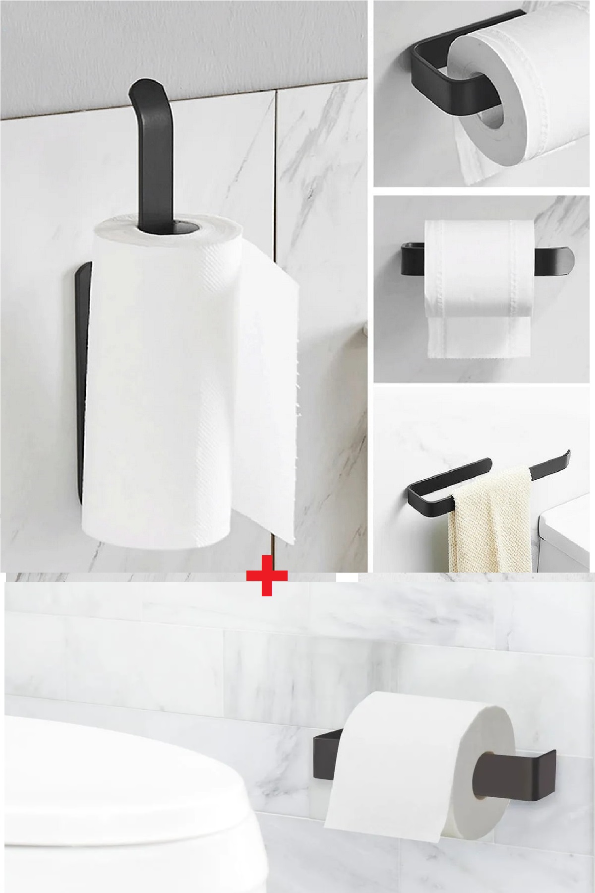 2 Lİ Set Mat Siyah Metal Kağıt Havlu Askısı Ve Tuvalet Kağıtlığı Vida veya Yapıştırmalı