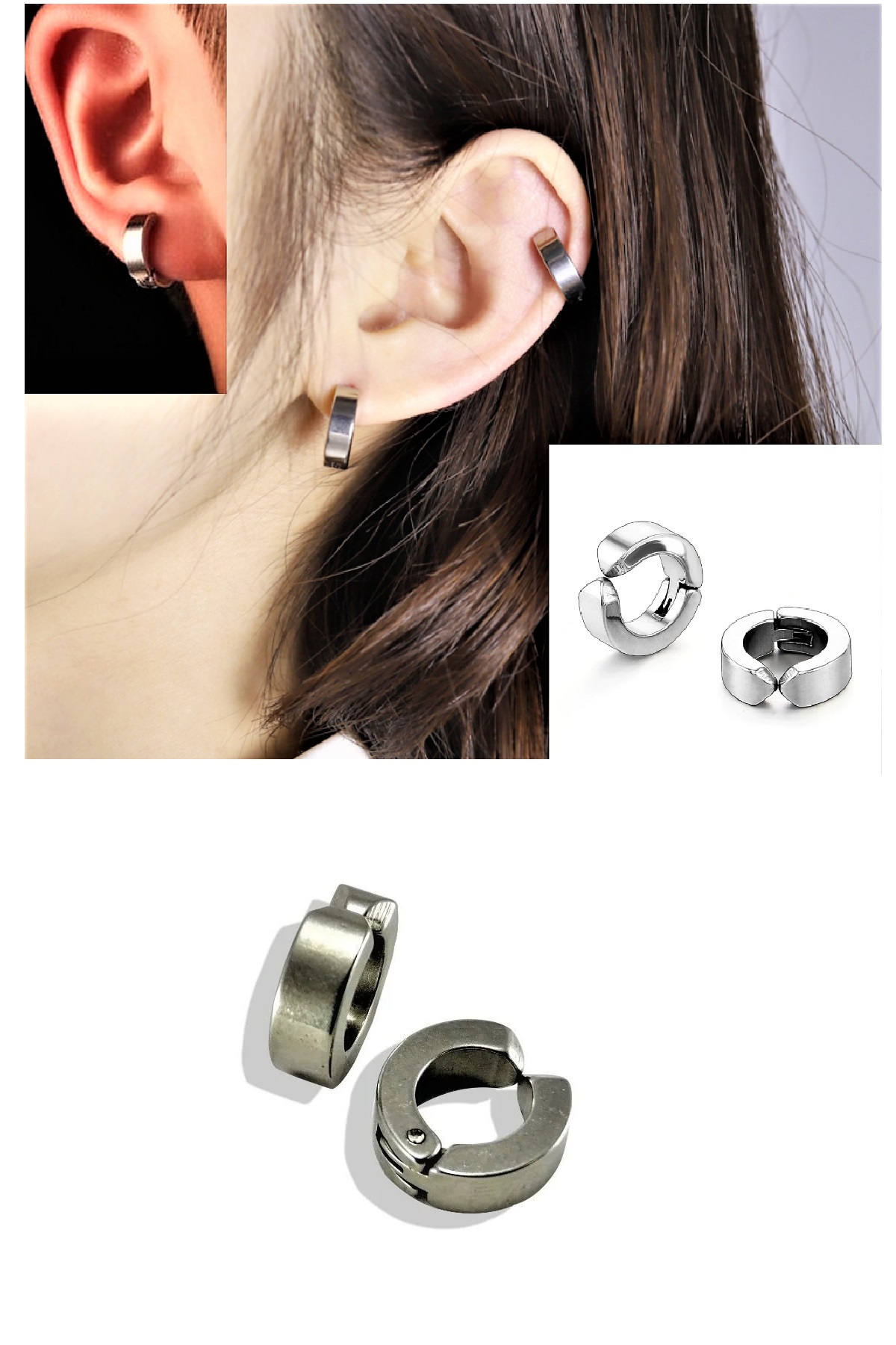 2 Adet Çelik Kıstırmalı Küpe 316L Çelik