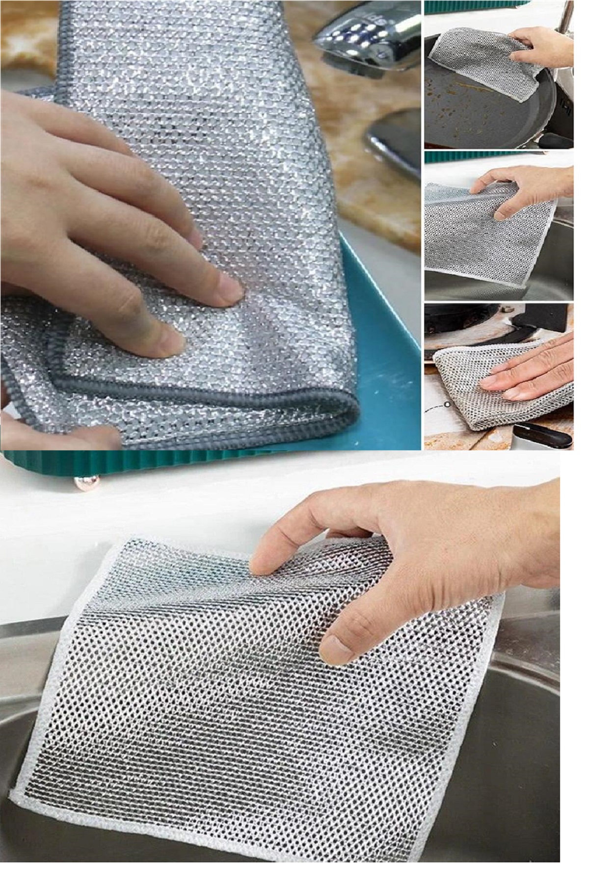 Çok Fonksiyonlu Çizilmez Tel Bulaşık Bezi Çelik Tel Bulaşık Havlusu 5 Adet Gelişmiş elmas ızgara dokuma teknolojisi ve yüksek kaliteli metal tel malzeme ile üretilen çok amaçlı tel bulaşık bezi, Tencere ve eller için güvenlidir