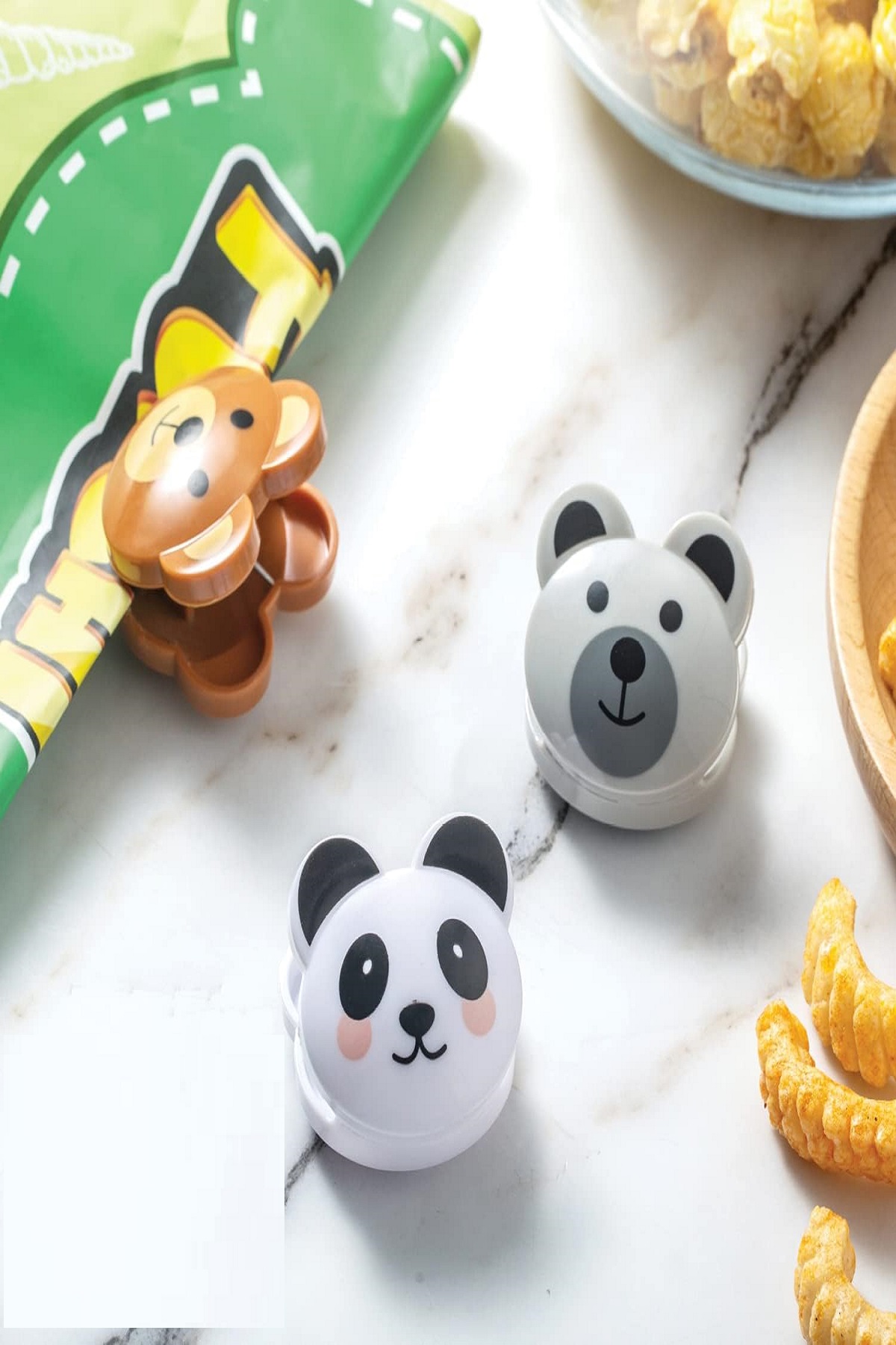 3 Adet Sevimli Hayvan Figürlü Poşet Klipsleri Hava Geçirmez Mutfak ve Gıda Torbası Mandalı