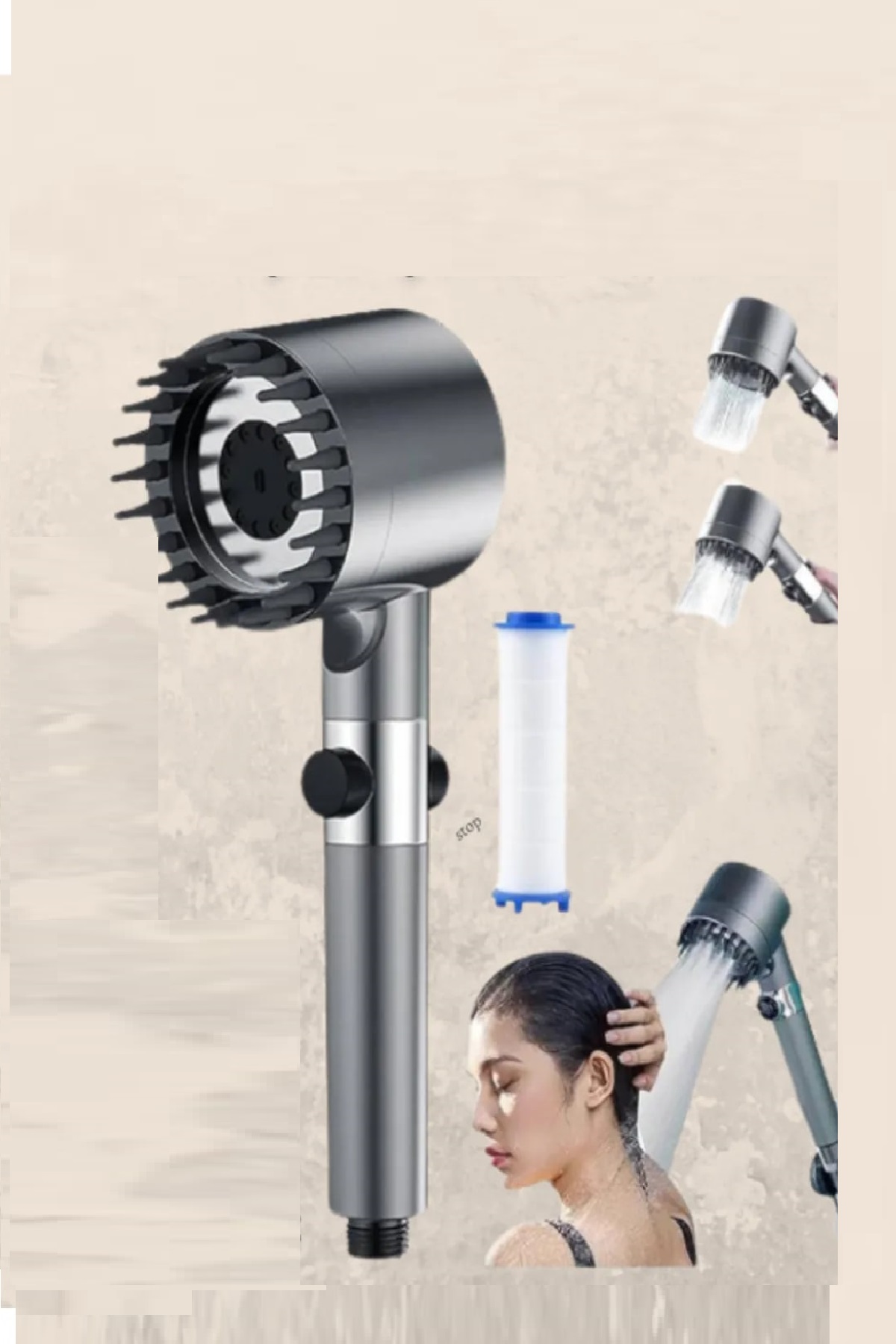 3 Fonksiyonlu Masajlı Duş Başlığı – Kireç Filtreli Start- Stop Tuşlu Banyo Duş Başlık