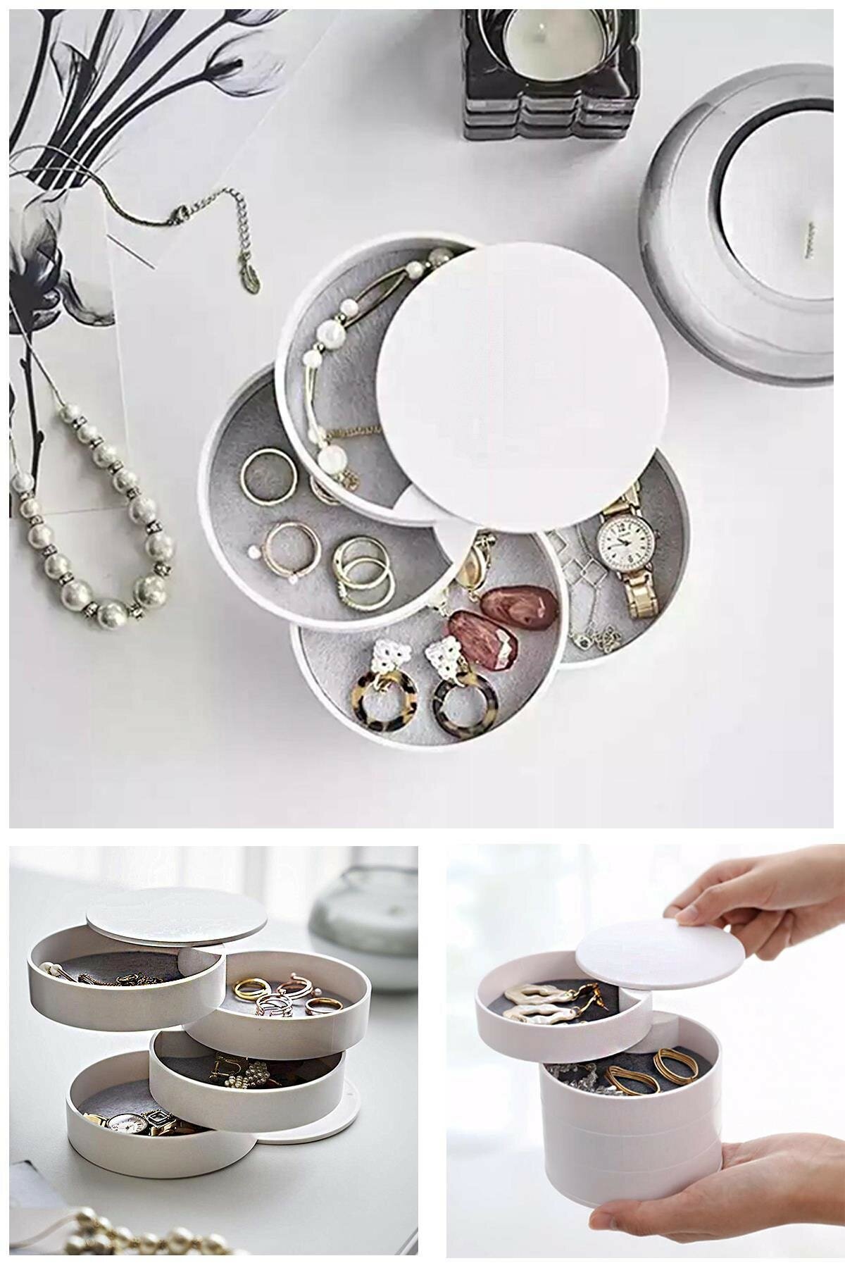 1 Adet 4 Katlı Silindir Takı Ve Makyaj Organizer Kutusu