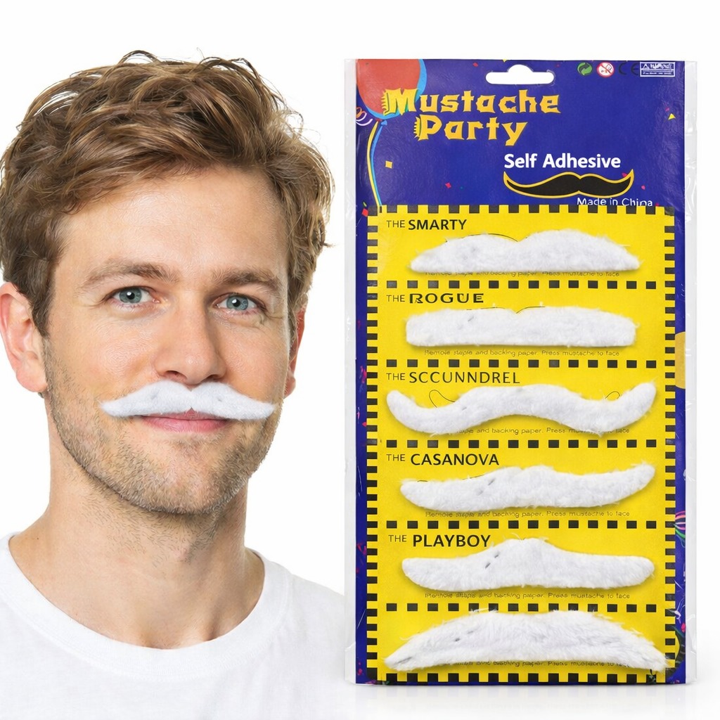 Bu set içerisinde birbirinden farklı 6 beyaz bıyık modeli bulunur. Her biri farklı karakter havası verir; ister entel, ister babayiğit, ister parti ruhu… Kombininize göre seçiminizi yapabilirsiniz.