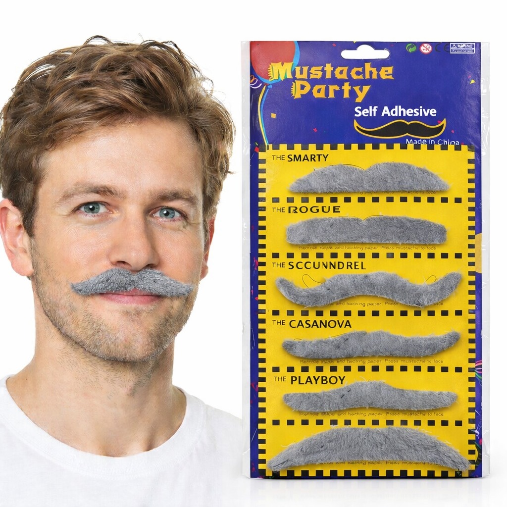 Bu set içerisinde birbirinden farklı 6 gri bıyık modeli bulunur. Her biri farklı karakter havası verir; ister entel, ister babayiğit, ister parti ruhu… Kombininize göre seçiminizi yapabilirsiniz.