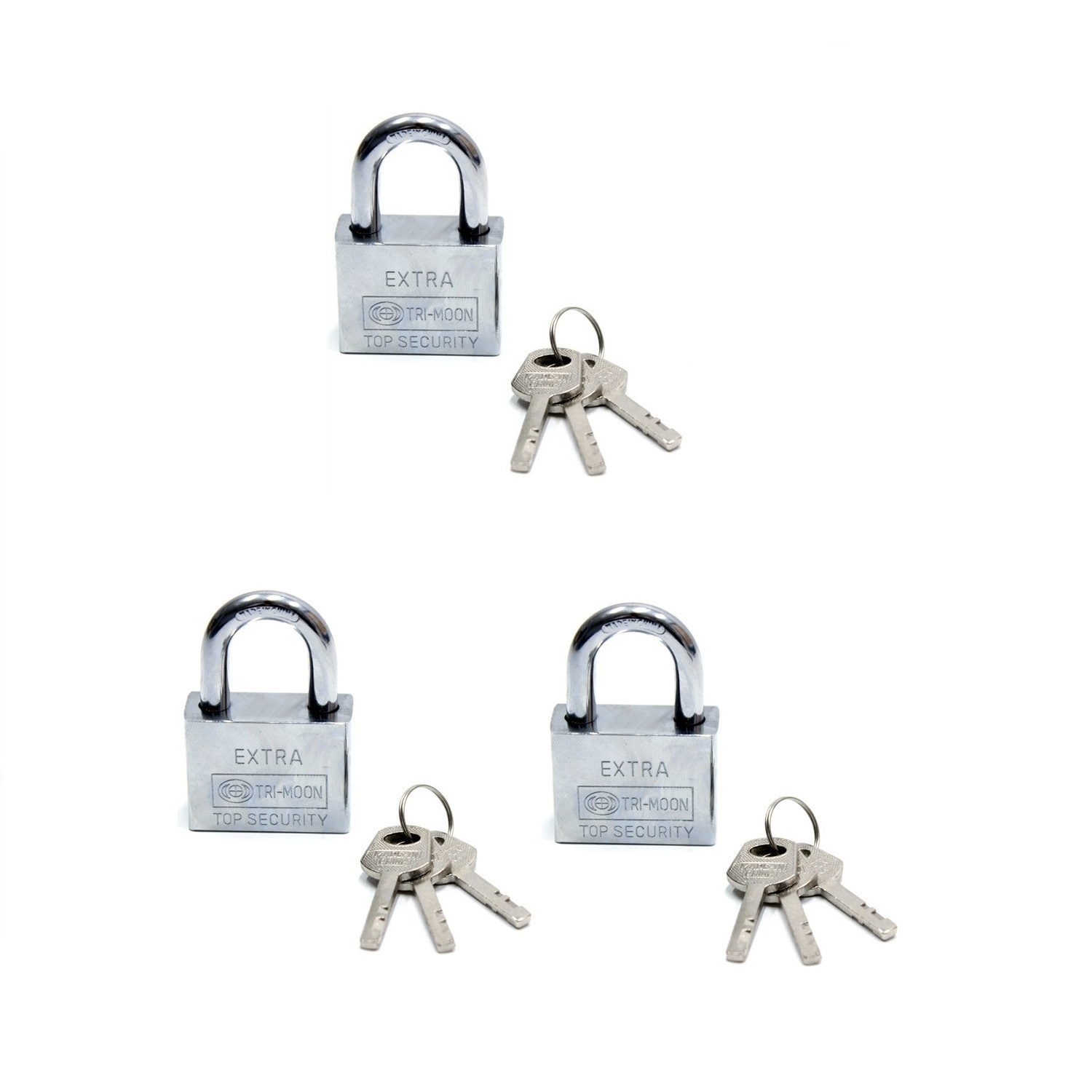 Akıllı Anahtarlı Asma Kilit 3lü Set - Mastercare Tri-Moon Master Anahtarlı 3 Lü Çelik Asma Kilit