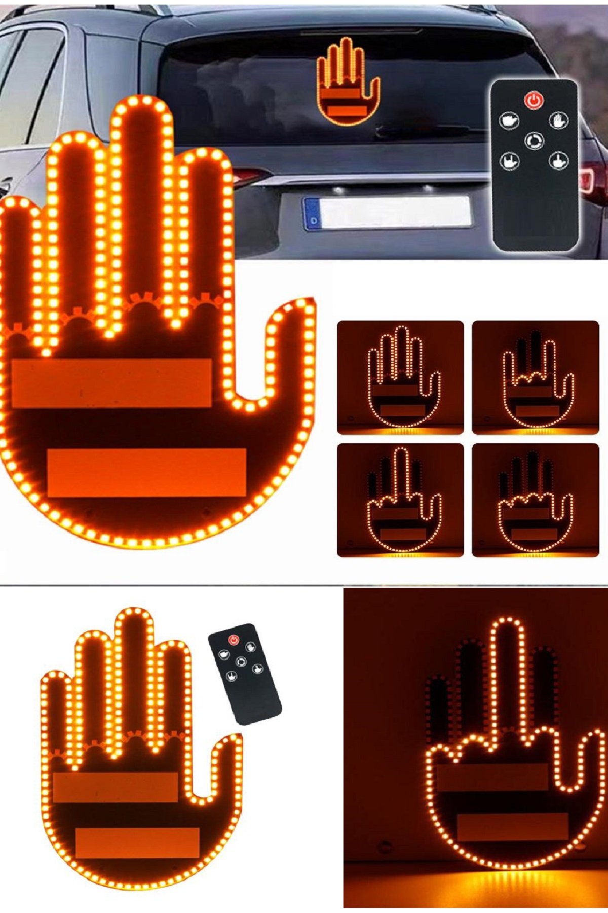 Araba İçin LED El Parmak Hareketi Işığı Kumandalı Komik Arka Cam İşareti Işık Aksesuarları