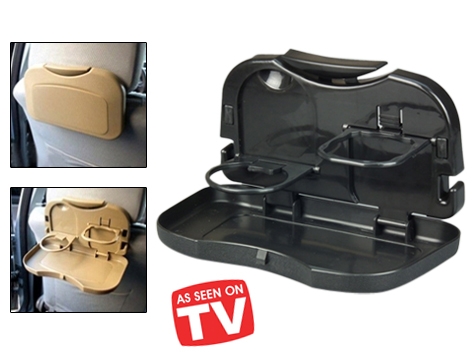 Araba koltuğunuzun arkasına kolayca yerleştirilen portatif tepsi ile yiyecek ve içecekleriniz dökülmeyecek, arabanız kirlenmeyecek!