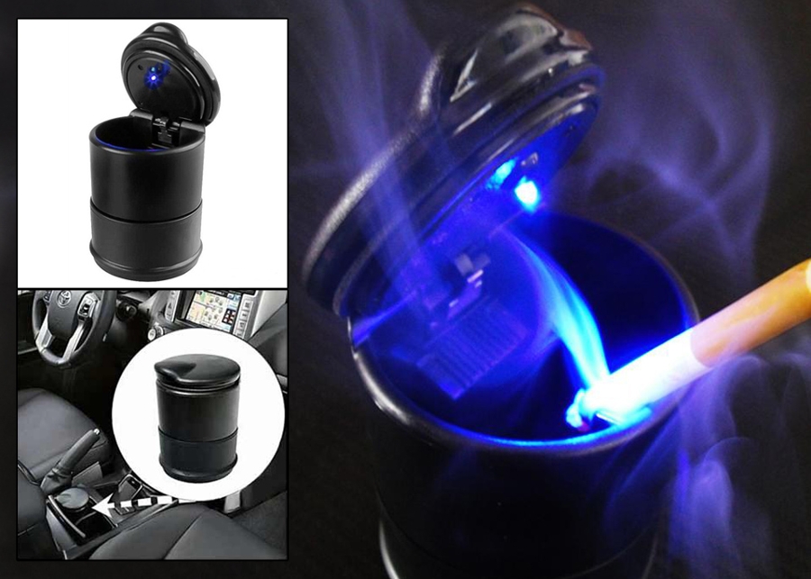 Tüm yerli ve yabancı otomobillerinde rahatlıkla kullanabilecekleri Araç İçi Küllük: LED Işıklı + Kapaklı Araba Küllüğü.