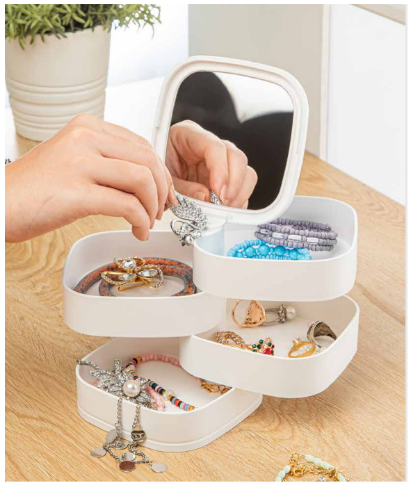 Aynalı 4 Katlı Kare Takı Ve Makyaj Organizeri