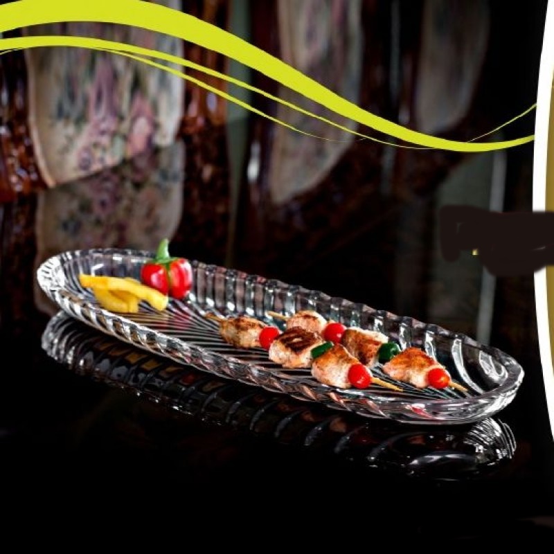 Balık Sırtı Kayık Model Cam Sunum Tabağı Orta Boy 33 CM