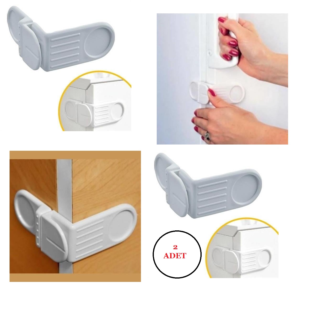Ürün İçeriği: 2 Adet Bebek Çocuk Güvenlik Çekmece ve Dolap İçin Kendiliğinde Yapışkanlı Vidasız Köşe Kapak Kilidi