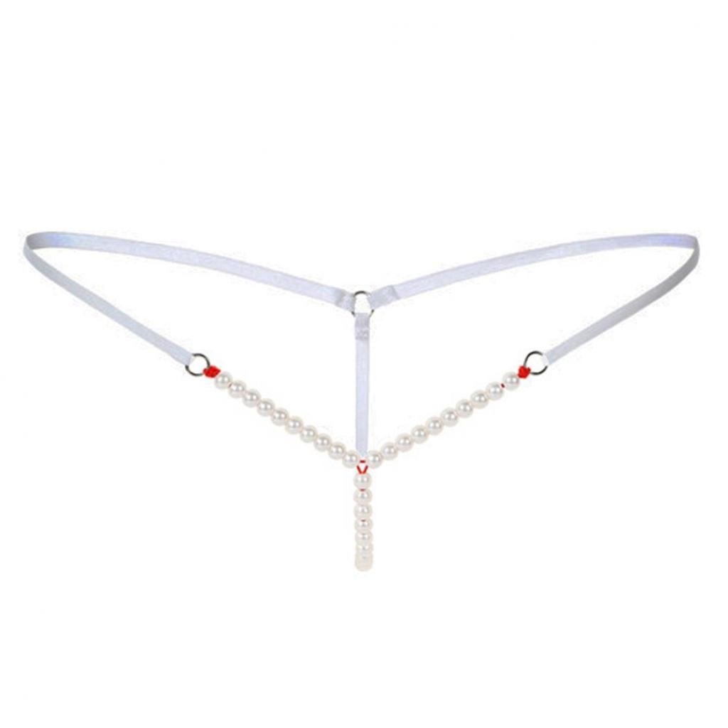 Beyaz İncili Özel Bölge Açık Zilli Fantezi Tanga - Beyaz