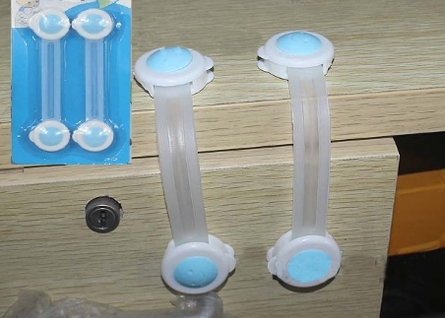 Çocuklarınızın dolap kapaklarını açarken çıkan sakatlıkları önleyen ve tehlikelerden koruyan 2'li Dolap ve Çekmece Çocuk Koruma Kilidi.