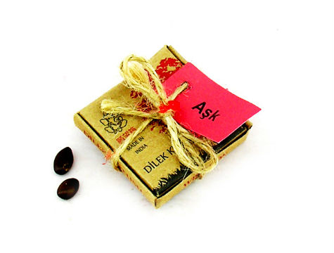 Ürün, özel kraft kutusu içerisinde olup, üzeri iple bağlıdır. Kutu ölçüsü: 4 x 4 cm.dir.