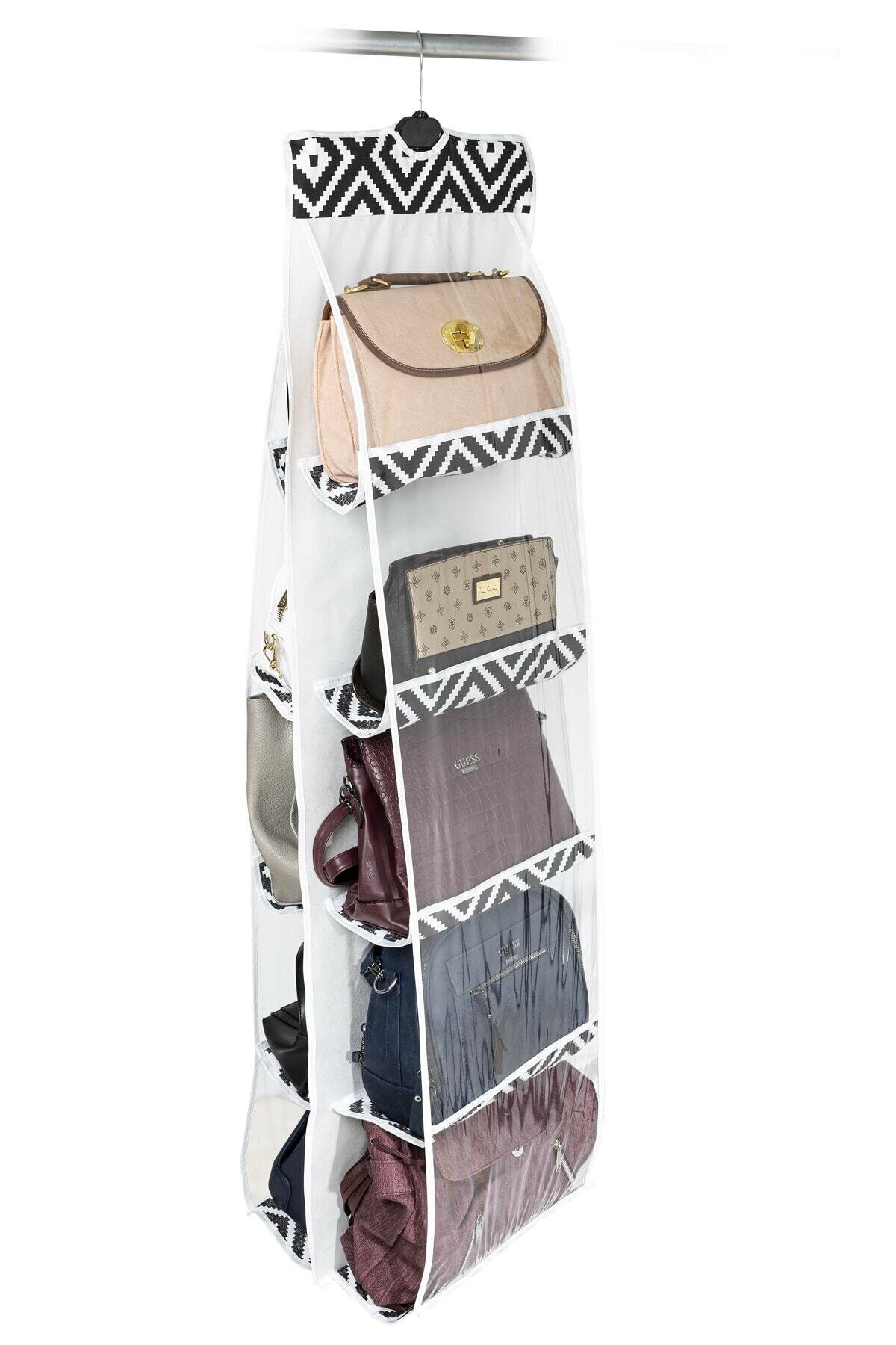 Dolap İçi Çanta Askısı 10 Bölmeli - Mozaik Siyah Desen