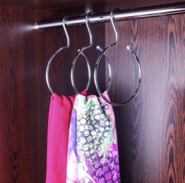 Metal halka tasarım askı ile Eşarp ve Şallar daha derli toplu asılacak.