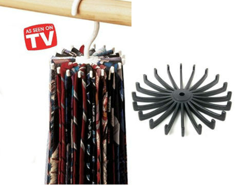 Döner mekanizmalı Kemer ve Kravat Askısı giysi dolabınızdaki tüm kemer ve kravatları saklamanın ideal çözümü.