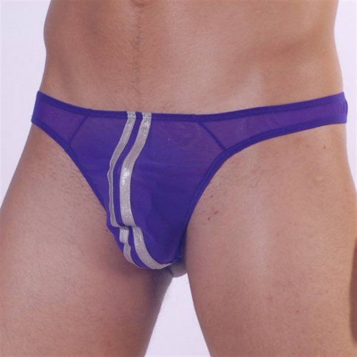 Mor renkte önü lame şeritli esnek transparan kumaştan üretilmiş seksi string iç giyim.