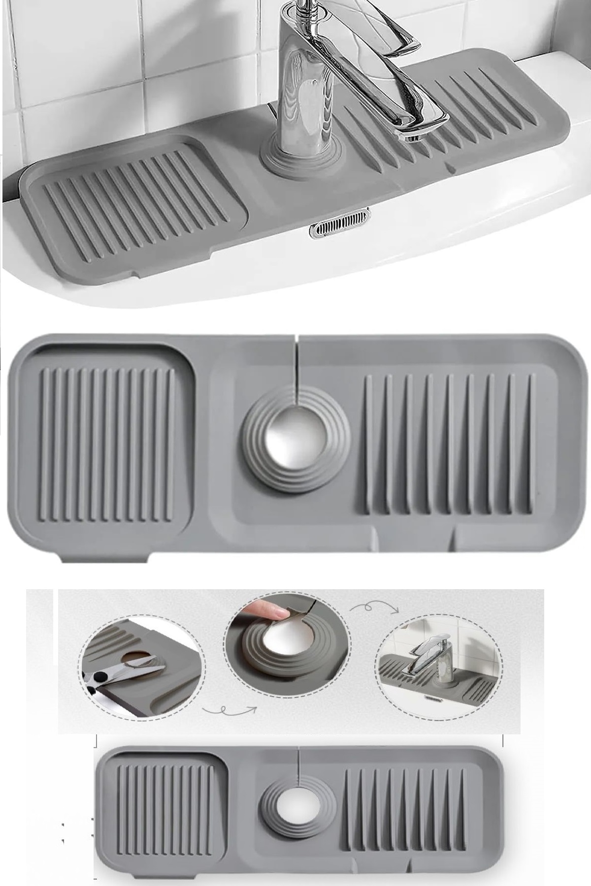 Elastik Mutfak Banyo Musluk Matı Düzenleyici Kaydırmaz Taban Organizer Lavabo Kenar Matı