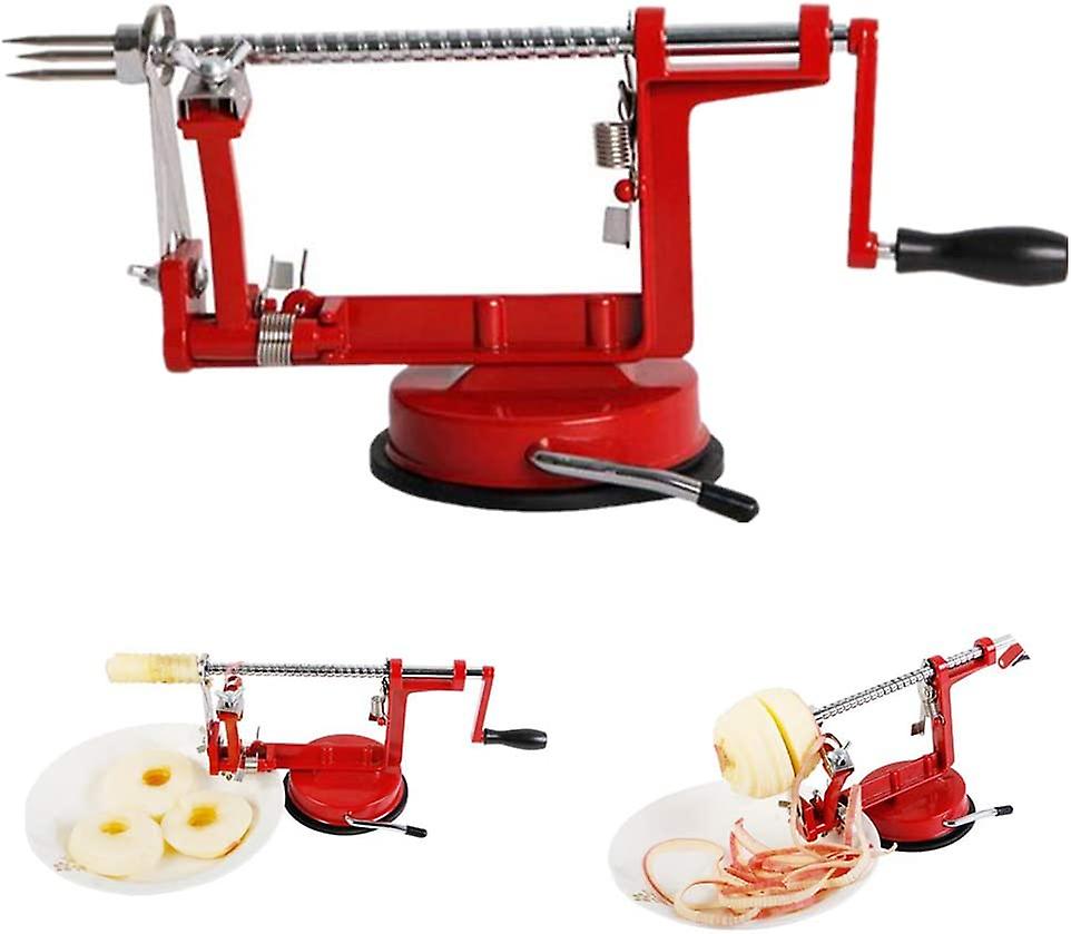 Elma yemek ve soymak hiç bu kadar zevkli olmamıştı! Özellikle çocuklu ailelerin kaçırmaması gereken bir ürün. armut, ayva, patates ve turp soymak için de güvenle kullanabilirsiniz. Paslanmaz çelik bıçağı ile elmayı mükemmel incelikte soyar. Kullanımı kolaydır, meyve 3'lü çiviye saplanır, çevirme kolunu çevirince alet çalışır.Meyve yemeyen çocuklarınıza elma armut yemeyi sevdiren bir üründür.Güçlü vakum tabanı ile her yüzeye sabitlenir, kullanım sırasında kaymaz. Tüm bıçakları takıp çıkarılabilir özelliktedir.Ürün dökme demirden yapılmış olup bıçakları paslanmaz çelikten imal edilmiştir.Soyma bıçağı farklı kalınlıkta soymak için ayarlanabilir, oynar başlığı ile her boyda meyveyi rahatça soyar. Bıçak başlıklarını ayarlamak suretiyle dilerseniz sadece soyma, sadece dilimleme ve çekirdek çıkarma yapabilirsiniz.Temizlemesi ve yıkaması kolaydır. Okul kantinlerinde, restoranlarda, otellerde, mutfağınızda, piknikte kısacası her yerde rahatça kullanabilirsiniz.Elmaların kabuğunu kolay ve hızlıca soyar,elmanın çekirdeğini çıkartır, Meyveleri eşit spiral halkalar halinde dilimler, dekoratif bir görüntü oluşturur.Dilimler birbirinden ayrılmadan tek parça halinde çıkar.Kabukları ince ve düzgün bir şekilde soyar.Vakumlu alt kısmı sayesinde zemine kolayca sabitlenir ve kolay kullanım imkanı sunar. Ayrıca, elma turtası, elma mezesi, meyve salatası, kuru meyveler, patates, turp ve daha bir çok meyveyi soymak için idealdir.Soyulacak olan meyvelerin şekline göre otomatik olarak ayarlanır.Altındaki vantuz ile bulunduğu ortama kolayca tutunur. Ürün boyutları: Uzunluk :20 cm