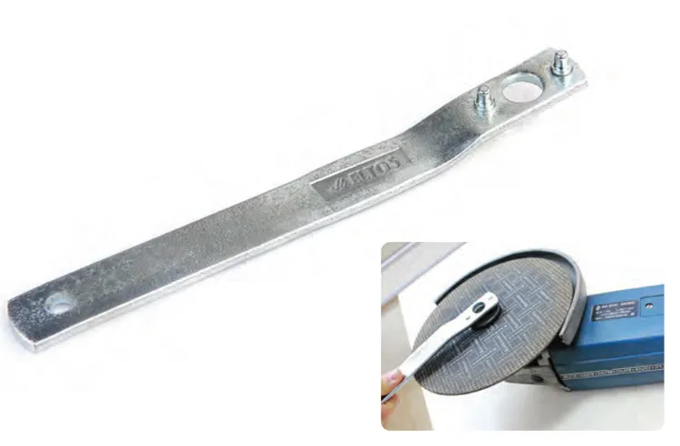 Eltos Taşlama Somun Anahtarı - Büyük, taşlama makinelerinde kullanılan kesme veya taşlama disklerini sıkıca sabitlemek ve sökmek için özel olarak tasarlanmış bir alettir. Özellikle büyük çaplı taşlama disklerini kullanan profesyonel veya amatör kullanıcılar için ideal bir seçenektir.