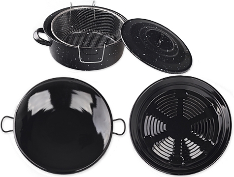 Kapaklı ve Süzgeçli Emaye Kızartma Tenceresi ile evinizde rahatlıkla patates, biber, patlıcan.. istediğiniz ne varsa kızartabilecek, Emaye Közleme Tavası ile sebzelerinizi ister ocağınızın üstünde ister fırında rahatlıkla közleyebilecek ve Emaye Kaplama Sac Kavurma Tavası ile yaptığınız yemeklere herkes bayılacak!