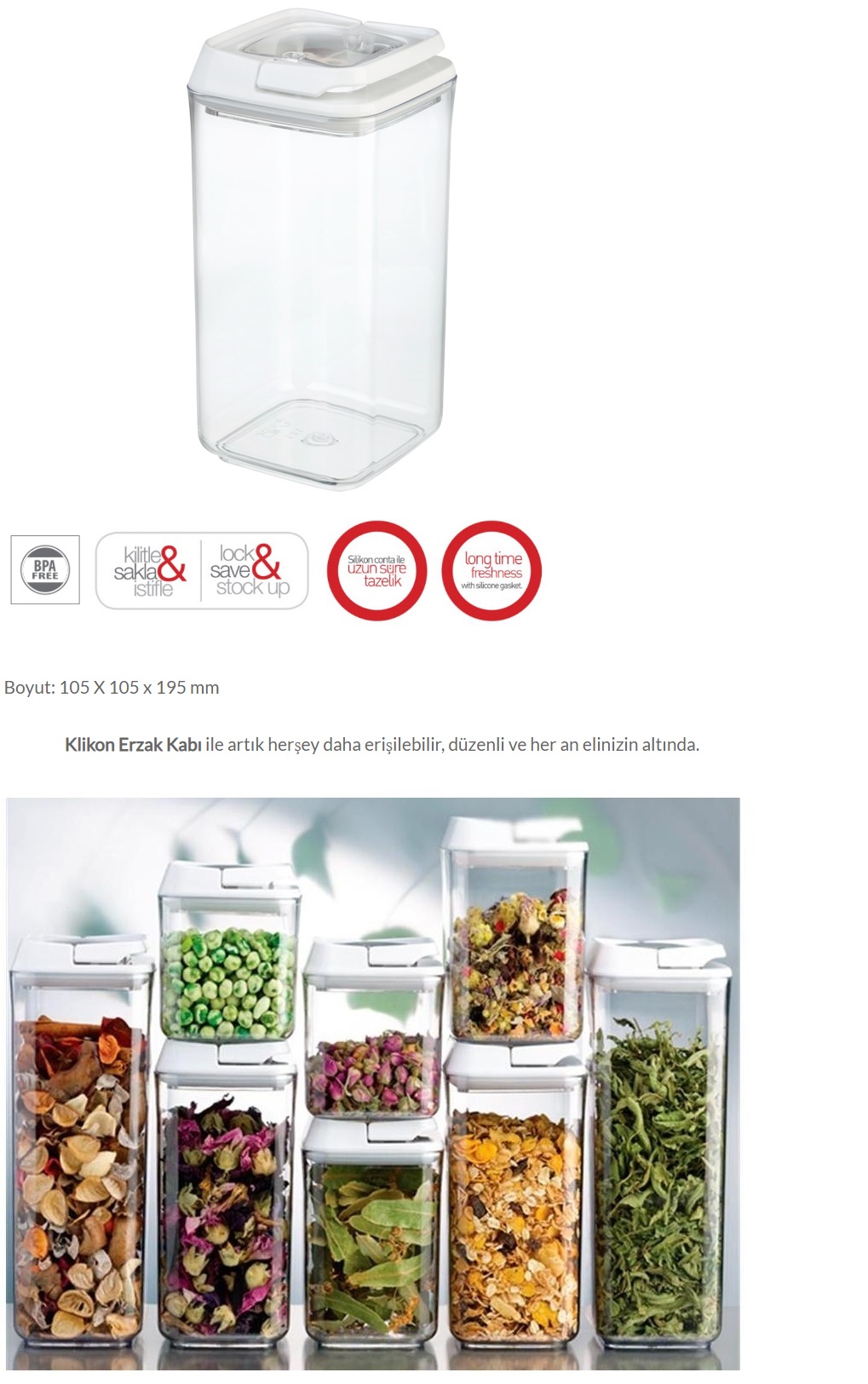 Erzak Kavanozu Kilitli Saklama Kabı Silikon Contalı Kare Erzak Kabı Vakumlu 1.20 Lt ile makarna vb bakliyatlarınız başta olmak üzere herşeyinizi saklayabilirsiniz