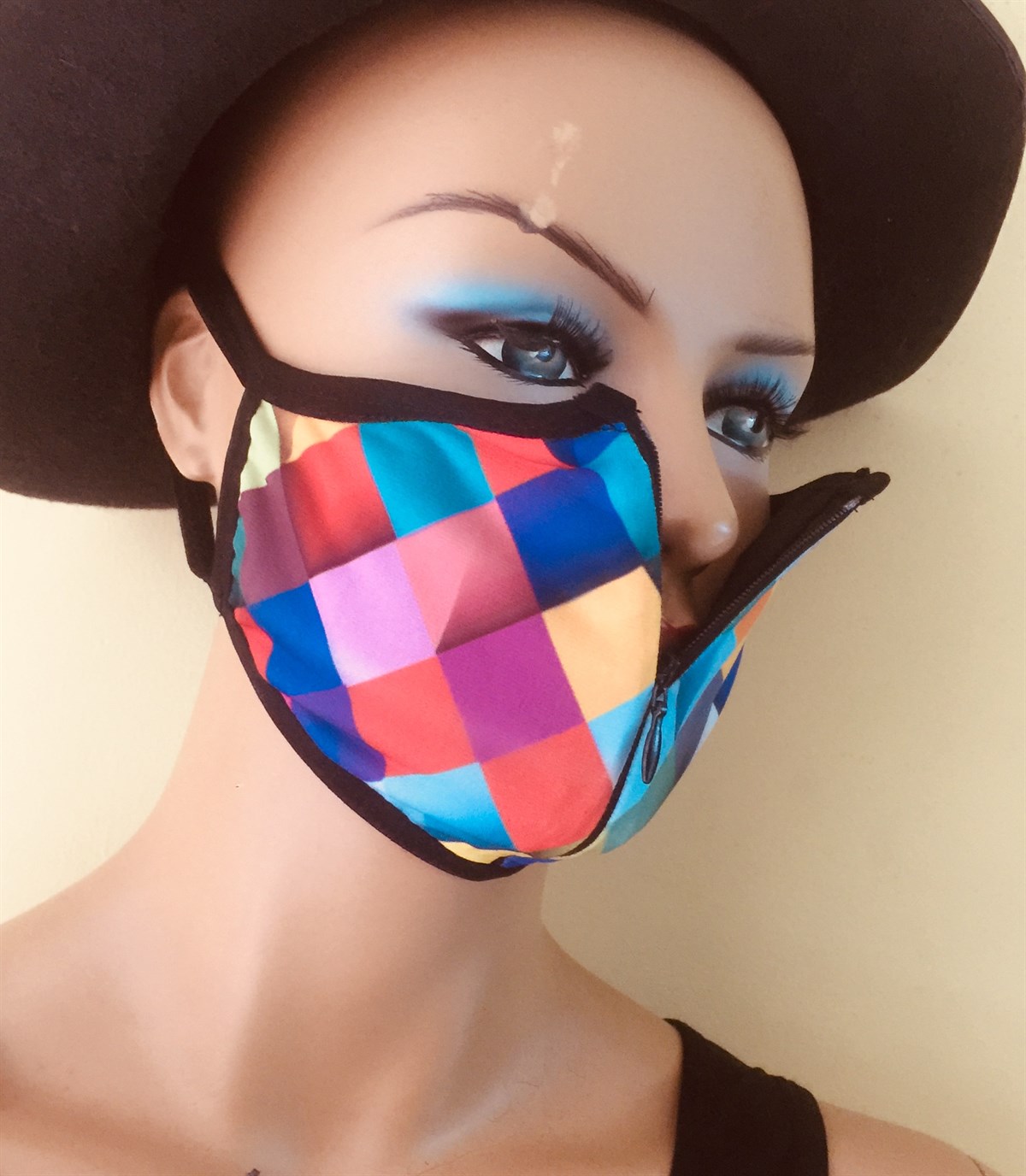 Fermuarlı , ön kısmı baskılı kumaş ile arka kısmı %100 Pamuk kumaştan üretilmiş fantezi maske.