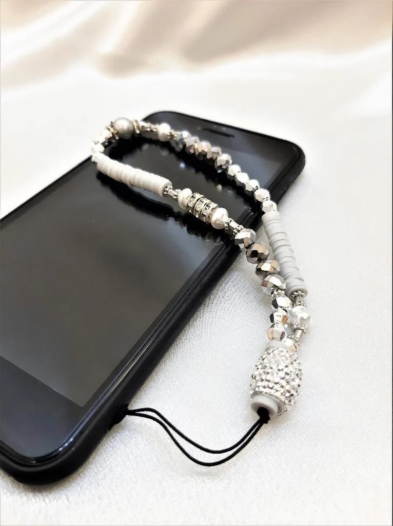 Fimo Taşlı Janjanlı Telefon Charmı Gümüş Taşlı Telefon Bileklik Askısı