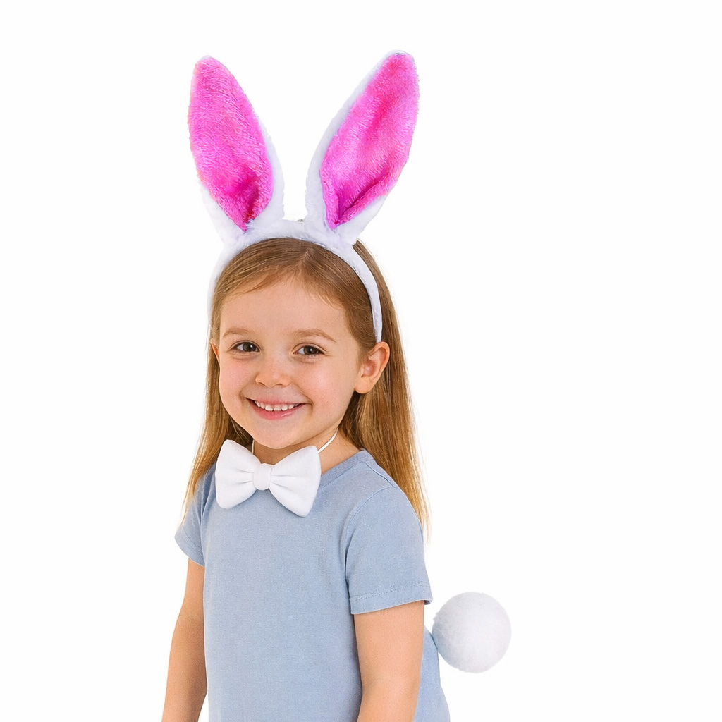 Tavşan Kulaklı Taç: Esnek ve rahat kullanımlı taç üzerine sabitlenmiş, canlı fuşya pembe renkte, uzun ve dikkat çekici tavşan kulakları.