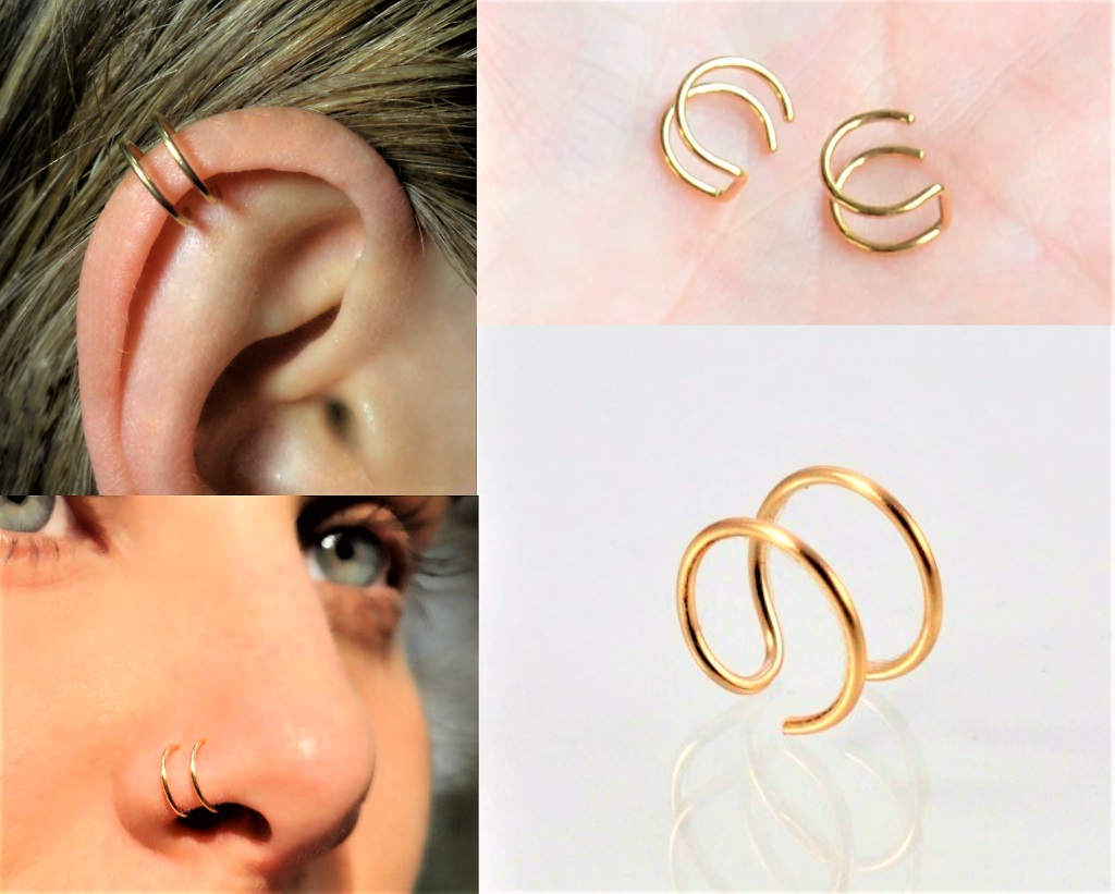 Gold Sıkıştırmalı Deliksiz Kulak Burun Dudak İçin Fake Piercing 316L Çelik le ister Kulak, ister dudak , burun kısacası canınız nereye isterse orada kullanabilirsiniz