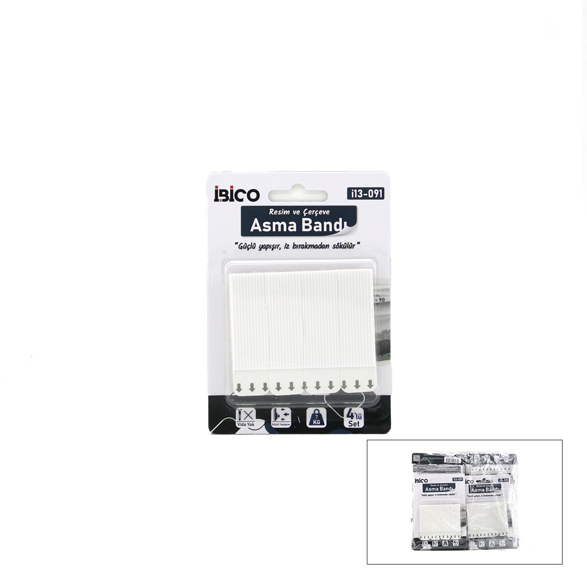 İBİCO İ13-091 ( 4PCS ) RESİM VE ÇERÇEVE ASMA BANTI ( 4LÜ SET=7KG.TAŞIMA ) ( ÇİFT TARFLI BANT ) ( GÜÇLÜ YAPIŞIR & İZ BIRAKMADAN SÖKÜLÜR )*24X12