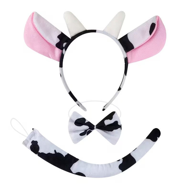 İnek Kostüm Seti 3 Parça, çocukların okul gösterilerinde, sahne performanslarında ve hayvan temalı etkinliklerde keyifle kullanabileceği sevimli ve hafif bir kostüm setidir.