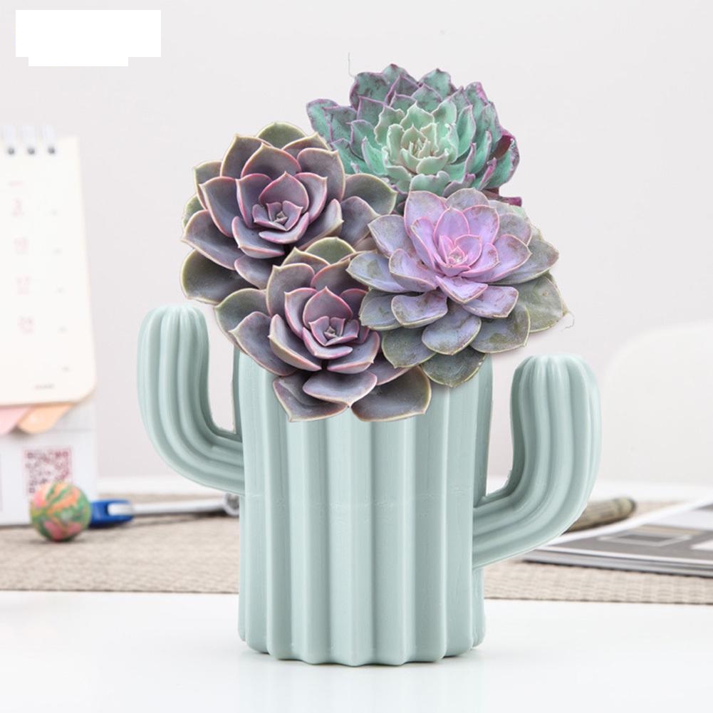 Kaktüs Figürlü Masaüstü Mini Sukulent Saksı - Kalemlik Plastik