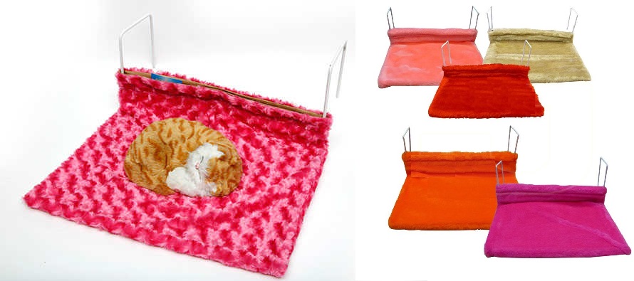 Kediler için, kalorifer peteklerine takılarak kullanılan, metal gövdeye geçirilmiş, kolayca çıkarılabilen, peluş, hamak kedi yatağıdır