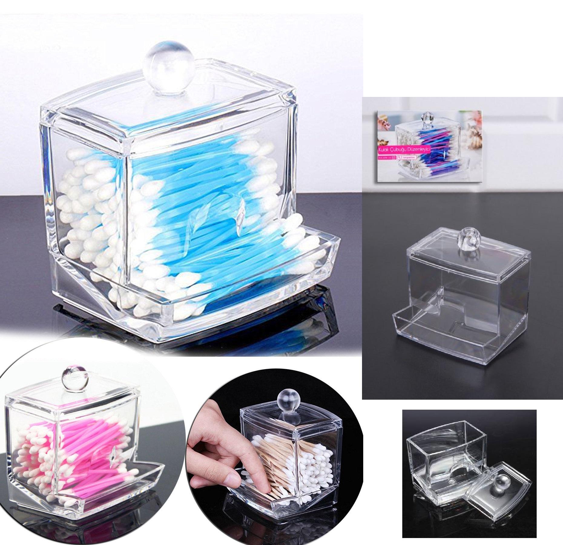 Şeffaf üstten kapaklı şık tasarım,Altta kulak temizleme çubuklarının alınma bölmesi vardır.