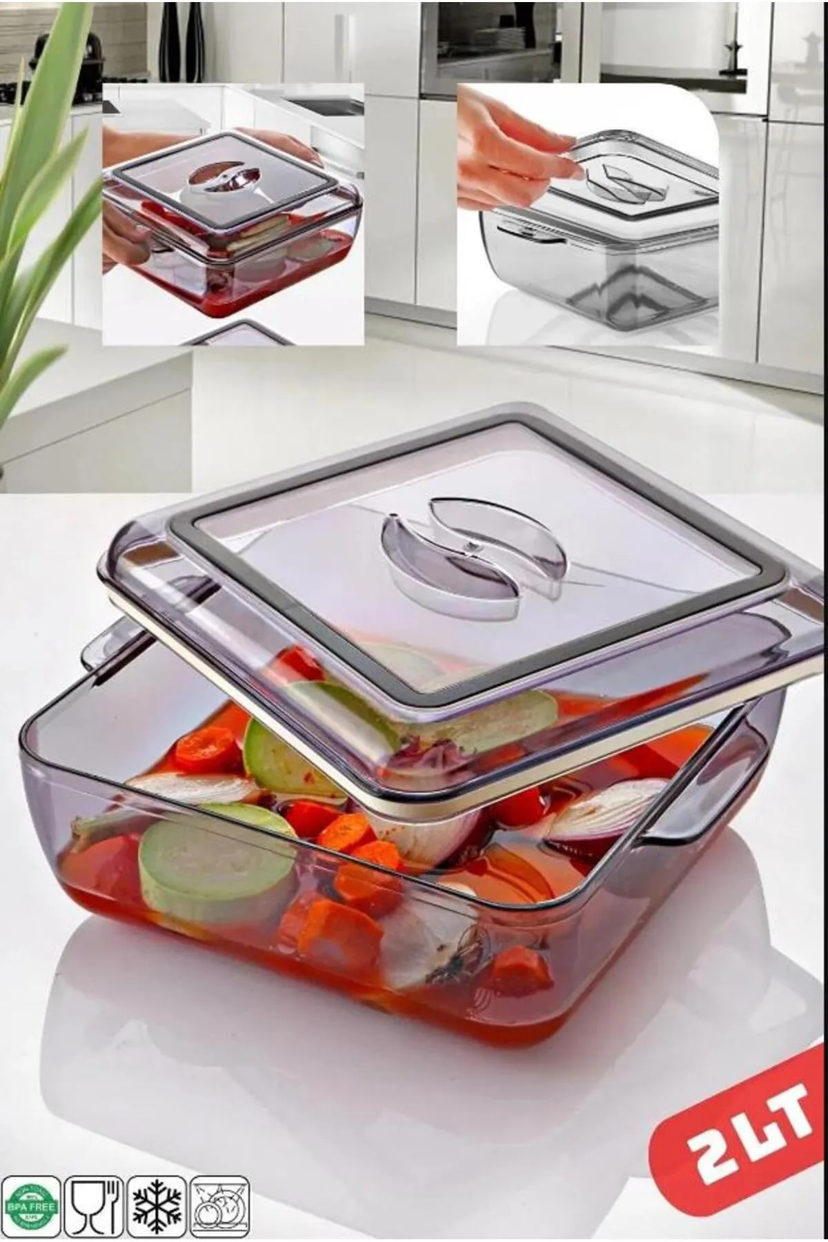 Kare 2 LT Silikon Contalı Borcam Kapaklı Akrilik Saklama Kabı Isıya Dayanıklı