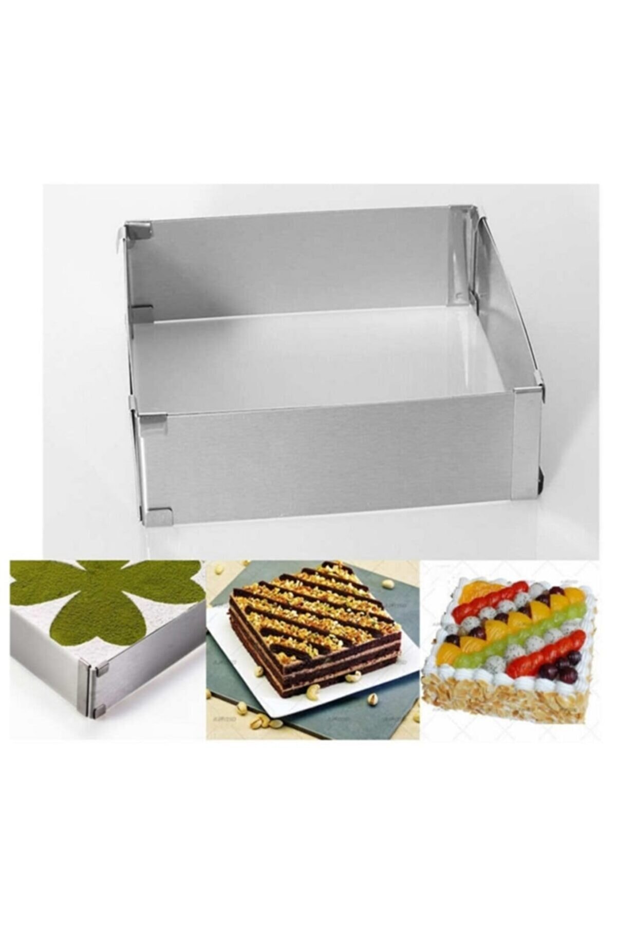 Kare Kek Kalıbı - Ayarlanabilir Kelepçeli Paslanmaz Metal