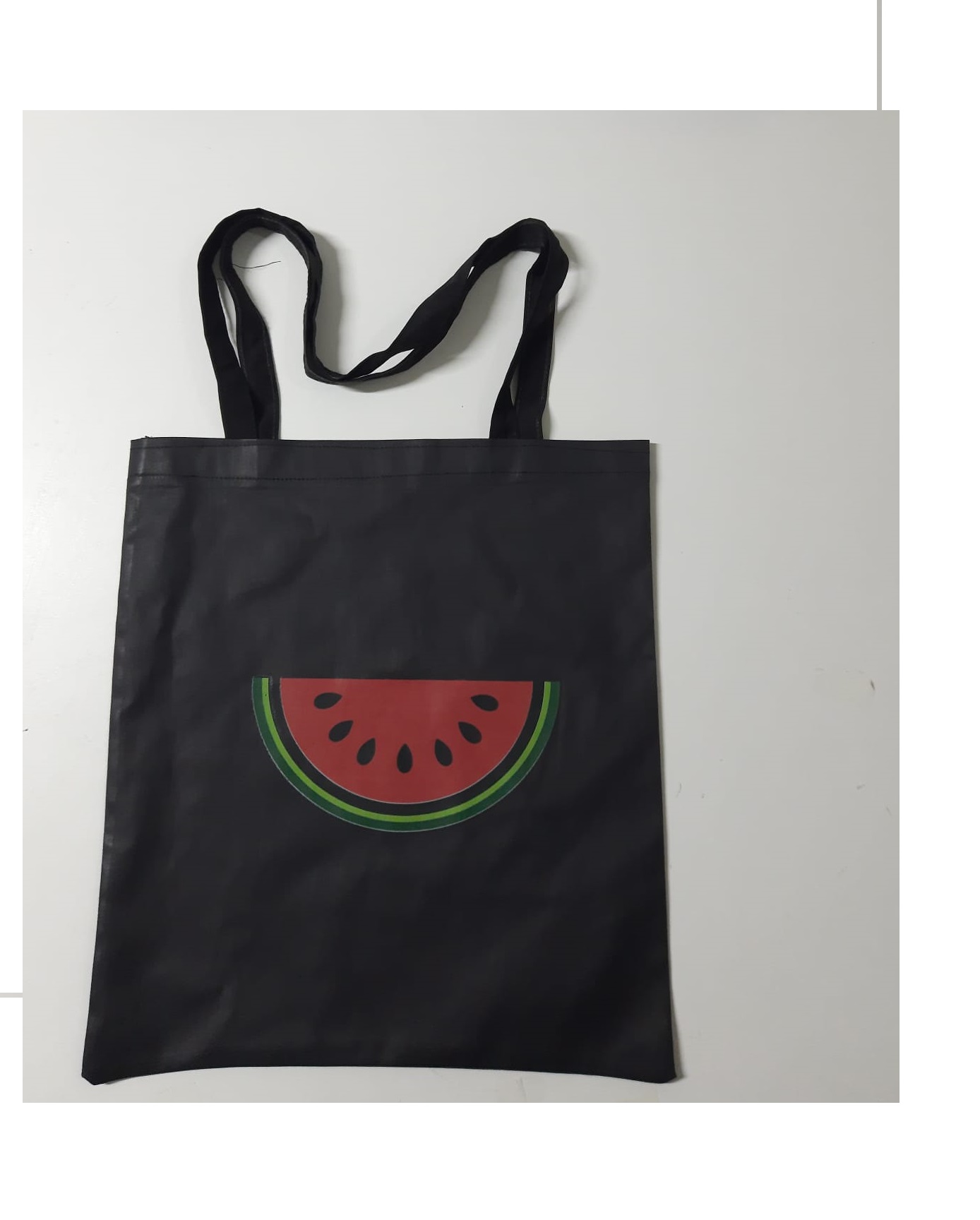 Karpuz Desen Bez Çanta - Pazar Market Çantası - Kitap Çantası Siyah