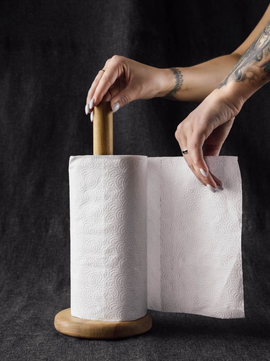 Kaymaz Tabanlı Kağıt Havluluk - Yuvarlak Ahşap Kağıt Havlu Askılığı