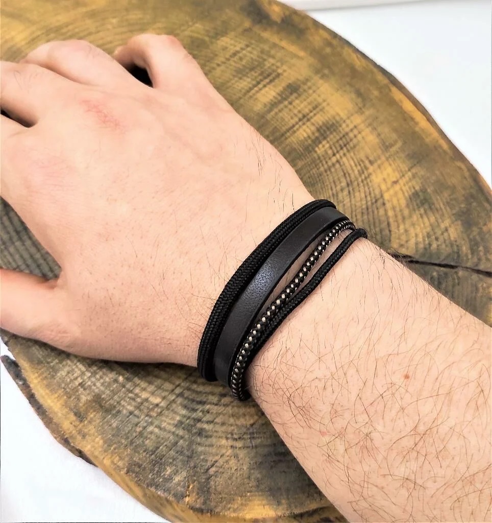 Koyu Kahverengi İpli Geçmeli Mıknatıslı Deri Bileklik