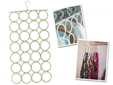 Dolaplarını düzenleyen mükemmel tasarımlı bir ürün Askılı Portatif 28 Gözlü Fular Askısı.