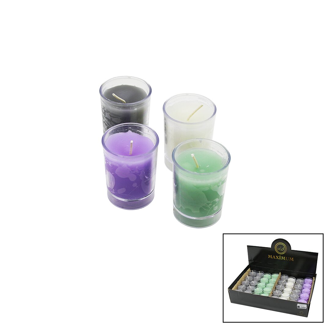MAXİMUM MAX-2421 ( ŞEFFAF MİKA KRİSTAL=MİNİ SHOT BARDAK KAP ) ( RENKLİ & KOKULU ) MUM*40X1