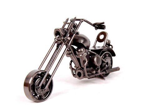 Bildiğiniz metal kapak, vida, somun, zincir, bilye, yay gibi çeşitli materyaller bir araya getirilmiş ve yaratıcı ellerde hayat bulmuş çok özel motosiklet modelleridir. Ofis masasına evinizin dekoruna tamamıyla uyum sağar.
